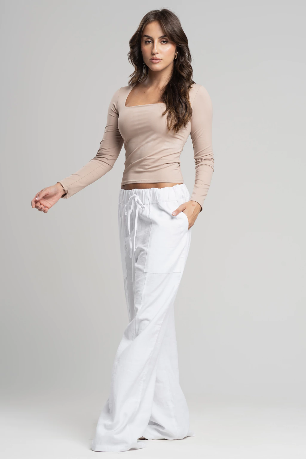 Blusa Básica Zoe: o decote quadrado e mangas compridas, oferecem um toque moderno e diferenciado, destacando-se entre os modelos tradicionais. Ele valoriza o colo de forma elegante e proporciona um visual estiloso.